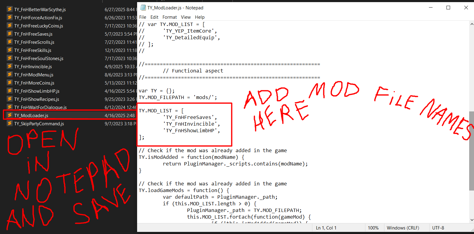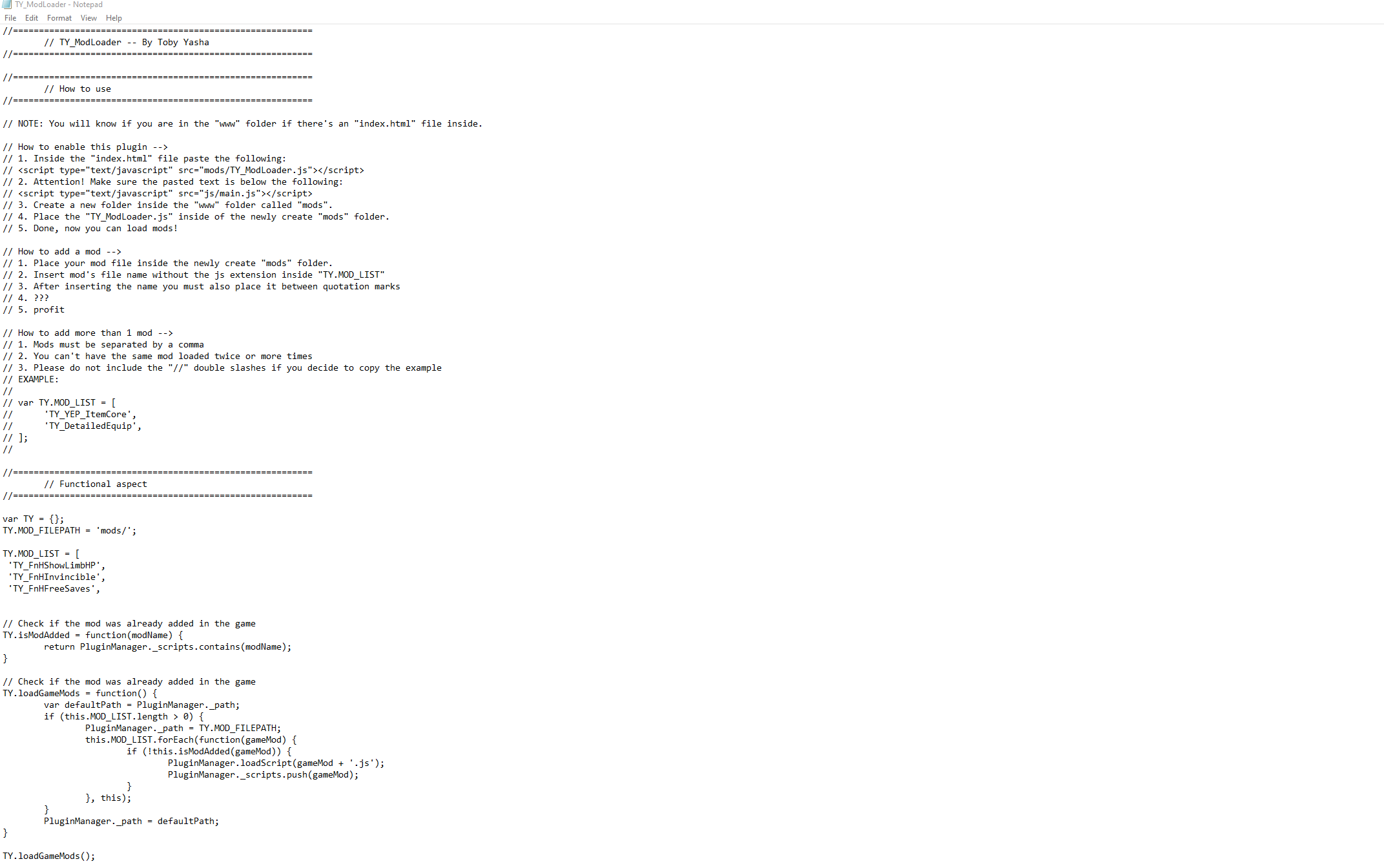 P.S You can review similar instructions inside the TY_ModLoader.js file, at the top.